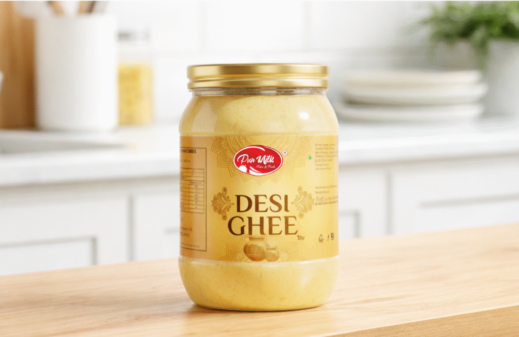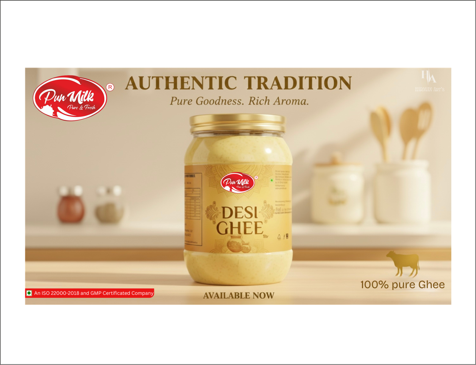 Experience the rich aroma and authentic taste of Punmilk Desi Ghee, made from the finest quality pure milk. Our ghee is traditionally prepared to preserve its natural flavor, golden texture, and essential nutrients. Packed with goodness, purity, and freshness, Punmilk Desi Ghee enhances the taste of every dish — from homemade rotis and sweets to festive delicacies. Add a spoonful of health and tradition to your kitchen with Punmilk’s 100% pure desi ghee.